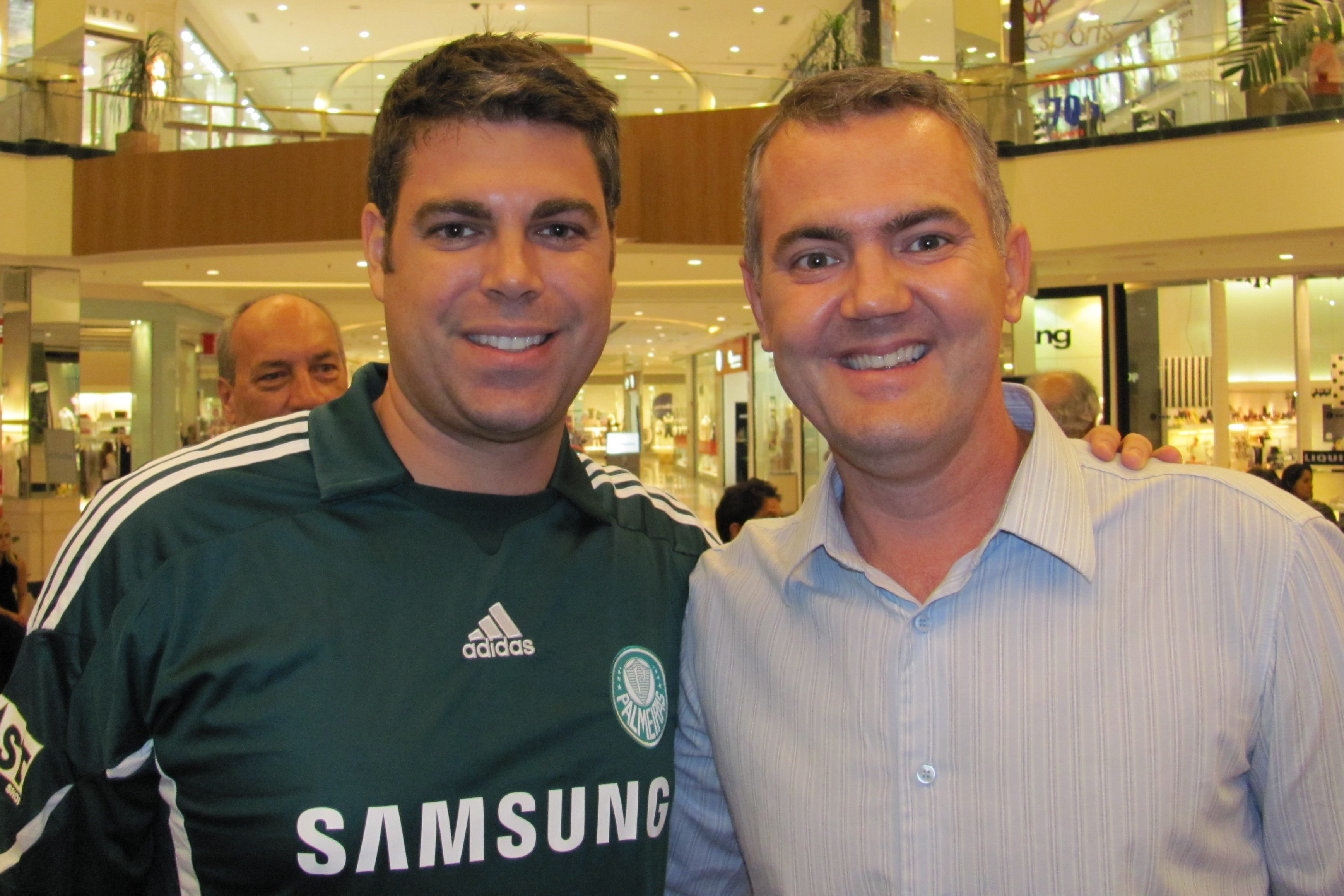 Every weekday at 8pm on the Brazilian national radio station CBN, four light-hearted and fun guys talk us through the most important football related news of the day. The programme is Quatro em Campo (Four on the Pitch), led by palmeirense Adalberto Piotto and counting on Carlos Eduardo Éboli, André Sanches and Marcos Guiotti  to provide additional expert analysis. Tonight (8 February), the quartet made a guest appearance in Brasilia, setting up a provisional studio in a shopping mall and inviting the local population to enjoy and interact in a live transmission. Yours truly would obviously not miss out on the opportunity to promote our glorious Palmeiras, which turned out quite well: within the first 30 seconds of the live broadcast – while Piotto saluted Brasilia and the audience – he also singled me out for a personal greeting (listen to the audio here)!