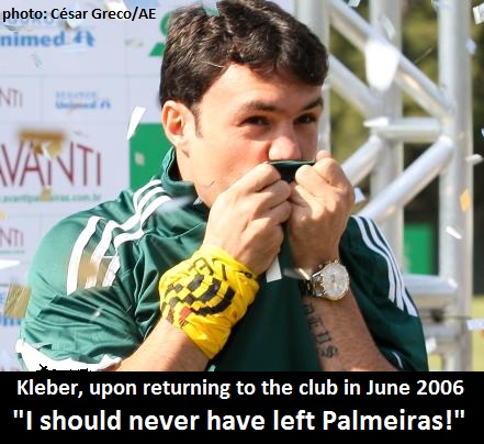 Although we might still have the one or the other postlude, our “Klebergate” seems to have come to an end. As is of common knowledge by now, Kleber’s agent Giuseppe Dioguardi made a huge mistake in throwing his client head to head against Palmeiras in the belief that Kleber would either get a substantial salary raise (on top of the US$ 230.000 a month he’s currently making) or be in a position to accept a transfer to Flamengo for a bigger pay check; in either case Dioguardi would make a nice little profit for himself. No such luck, as Dioguardi didn’t pay enough attention to Kleber’s contract, which stipulates not a US$ 4 million but rather a US$ 88 million fine in case of a contract break with Palmeiras.