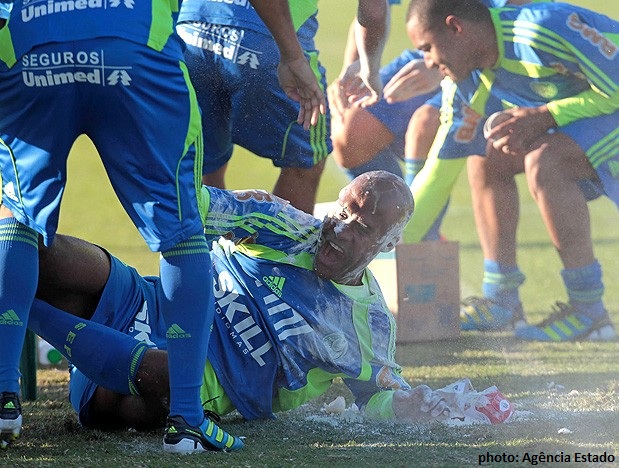 Speaking of Assunção: the set piece specialist turned 35 the other day. Tradition among footballers calls for flour and eggs a plenty. Anything Palmeiras wishes Assunção a Happy Birthday and that he may commemorate with a goal against Atlético Mineiro tomorrow Saturday!