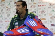 Adidas last week announced a fun campaign: personalised boots for Barcos, keeping count of how close he is from the mark he himself established before arriving at Palmeiras: to score 27 goals this season. As the Pirate has tucked home eight times so far, the boot he’ll be using against Coruripe on Wednesday carries a “-19”, in addition to the names of his two children Abril and Emílio. The boots will be given away to a supporter – through some sort of raffle or competition on the Adidas facebook page – after each game where Barcos has scored.