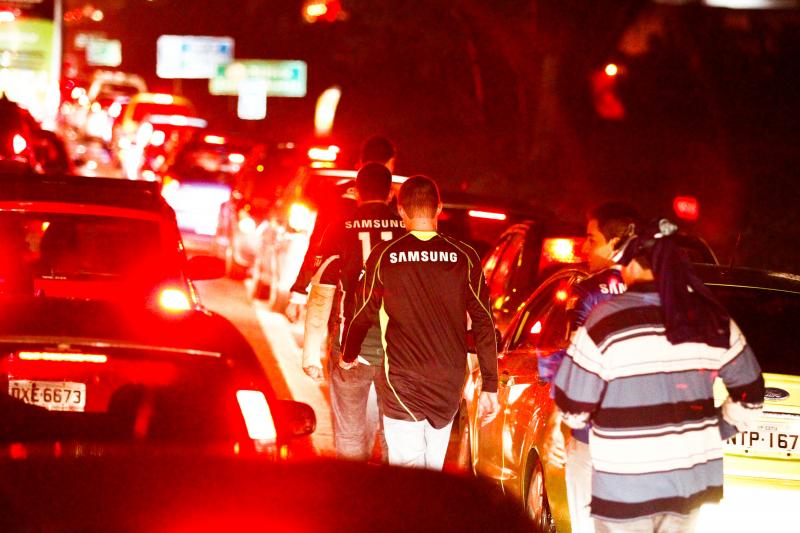 It’s absurd to call the Barueri stadium “home”, as we’ve related before (here, for example). Last Thursday, we had palmeirenses leaving the capital three hours ahead of the game against Grêmio and still not making it in time. We had palmeirenses – and not a few, mind you – leaving their cars by the highway and walking/running for kilometres in hope of reaching the stadium before it was all over. Many got in only at half-time. Some didn’t make it at all. Shameful. Revolting.