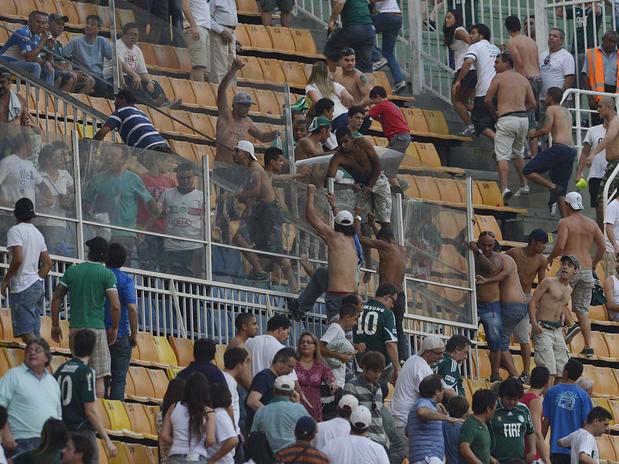 Scolari out, Murtosa out. Galeano, technical coordinator and Felipão’s protégé, out. Narciso (at least temporarily) commanding the squad, including Marcos Assunção, back from a minor knee surgery. Enough to surprise, revert, bring havoc to the arch enemy in Sunday’s win or win derby? Not quite. It was a reprise. Itchy referees, stupid Palmeiras players (read Luan) not able to control their temper, nerves and more nerves, lack of attention leading to crucial mistakes, lack of skills (damn it how hard can it be to head the ball LOW) and the regular dose of bad luck. In the end, what we had was not such a small number of the 25.000 present Palmeiras supporters invading the VIP section at the Pacaembu, looking to give club president Tirone and vice-president Frizzo a good beating.