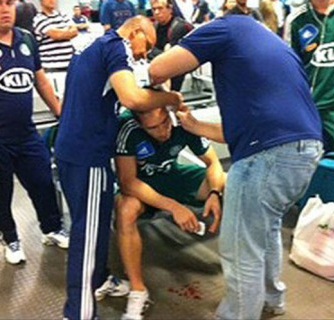 0307_hinchas_palmeiras_g_lance_2Early next morning, at the airport, you find yourself in a smaller group, waiting for the squad to arrive, like you’ve done many times before. When they do, you and your mates draw blood: Valdivia is the main target but Prass pulls the shorter straw as shattered glass provoke cuts to his ear and scalp, calling for stitches.