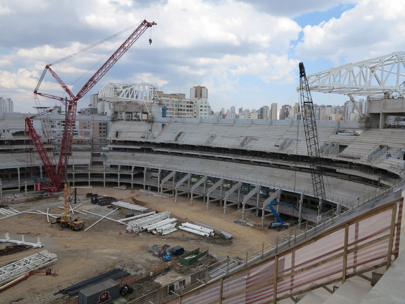 In the year I’ve lived in SP construction has gone really smoothly and it started to go up very quickly (I can see it from where I live). However, that seems to have changed in recent months. I presume that’s because they don’t want to open it until 2014 now given they’re in Serie B?
