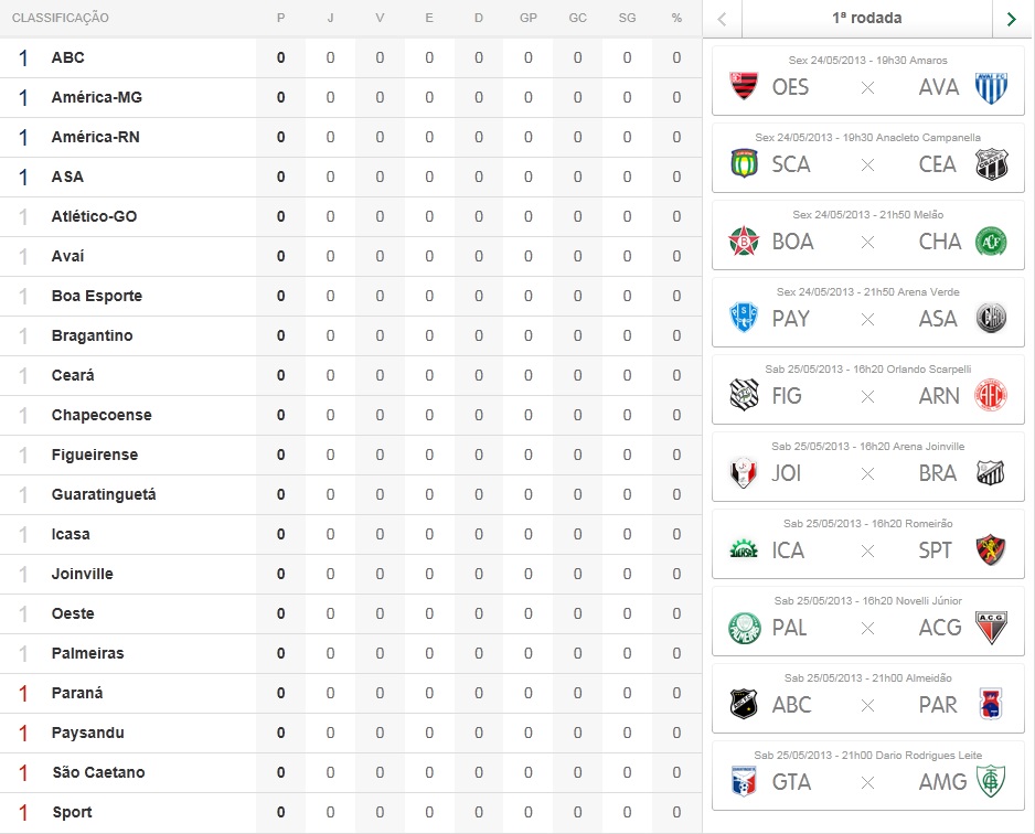 Friday, kickoff in the Brasileirão, second division. Palmeiras’ debut is on Saturday, 16:20 local time, against Atlético Goianense: one of the few teams expected to put up a good fight. With all respect to the adversaries in the second division: everything but Palmeiras qualifying in first would be embarrassing. Watch out for Atlético, Sport, Ceará, perhaps Figueirense and América Mineiro. Check out the tables to your right, with the fixtures for the first round.