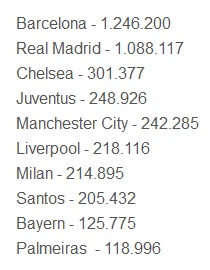 clubrankingyoutube10 is the current position that Palmeiras na TV – the clubs’ official TV channel on youtube – occupies in the football club ranking. It has happened incredibly fast: the Palmeiras channel had some 10.000 subscribers at the re-launch earlier this year, then saw its fan base expand to over 118.000 subscribers, overtaking Italian Internazionale as the tenth biggest youtube football club channel and rapidly closing in on Bayern Munich in ninth position. The tables to your right details the positions earlier this week. But as I mentioned: Palmeiras are already heading for 122K.