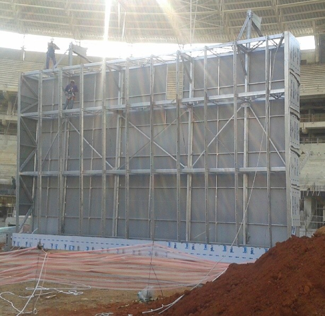 Not only the squad, but also the Allianz Parque is shaping up. Yesterday, one of two larger structures were being prepared for lifting: these will support the largest TV screens currently existing in Brazil, each measuring some 103 square meters and costing approximately US$ 3 million. The high definition screens will be placed at the far ends of the Arena, behind the goals. Picture to your right, courtesy of Wagner Pesinato.